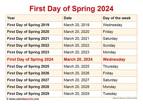 first day of spring in 2024 is on tuesday, the 19th of march (19/3/2024). in the spring of 2024, there are 142 holidays and days off in united states.